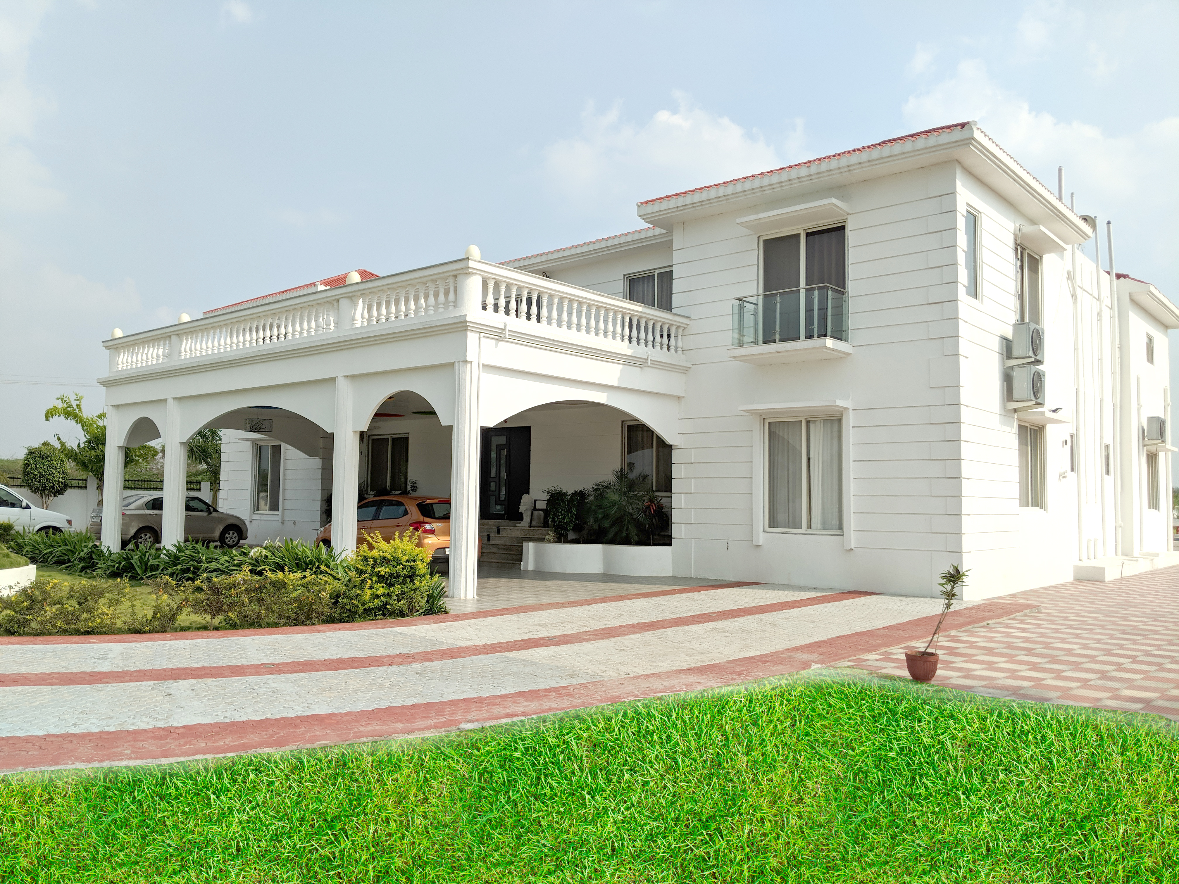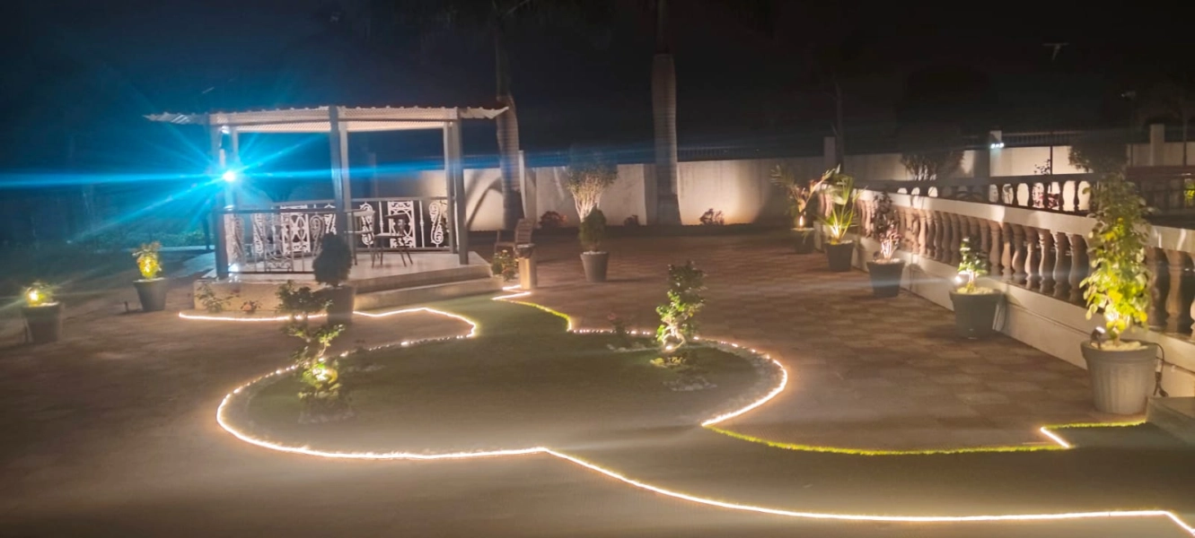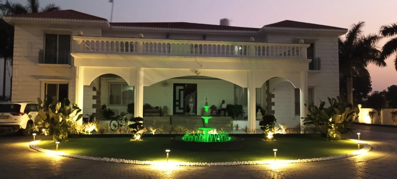 Exceptional range of amenities such as, Wi-Fi, Badminton, Cricket, Foosball, Pool table, Swimming Pool, Tennis Court, Playground, outdoor and indoor lounges, Royal size bed rooms, and washrooms. Pure Veg and Jain Food Available on request.